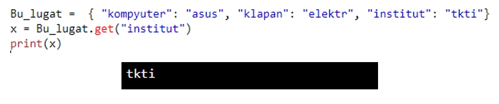 Belgilangan kalit so’z va qiymat bilan lug’atni chiqaradi..