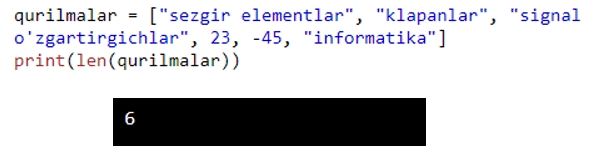 Ko’rib turganingizdek 6 raqami chiqdi, bu “qurilmalar” to’plami 6 ta elementdan tashkil topganligini anglatadi.